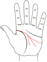 我在掌纹研究中发现,在中指下出现一个完整的弧形线的人,性格多内向,性格孤僻,在中医的观点上,称之为肝气郁结,而爱因斯坦青少年时期生活条件比较恶劣,中年又出现严重的肝炎,导致肝损害,老年后出现明显的孤僻性格,符合“肝主情志”的疾病的发展规律。我们称这条线为10线。右手比较明显,左手的10线隐约可见,这种区别提示肝血虚。双手10线的痕迹可以看出是后天形成的,所以根据我认为爱因斯坦的性格孤僻还不属于阿斯伯格综合征,应该与肝损害后遗留的情志改变有关。
