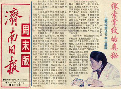 · 1996年1月5日第195期《济南日报》周末版刊登“探索掌纹的奥秘——记掌纹望诊专家王晨霞”